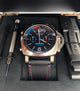 This comes with the complete set! Triple boxes (original outer brown box, black protective box, and wood grain inner box. Comes with the original two Panerai submersible straps (Velcro & rubber) and also 5 other straps!!! You will not find a more complete pre-owned PAM 24 set on the market with this many extra straps at this value.